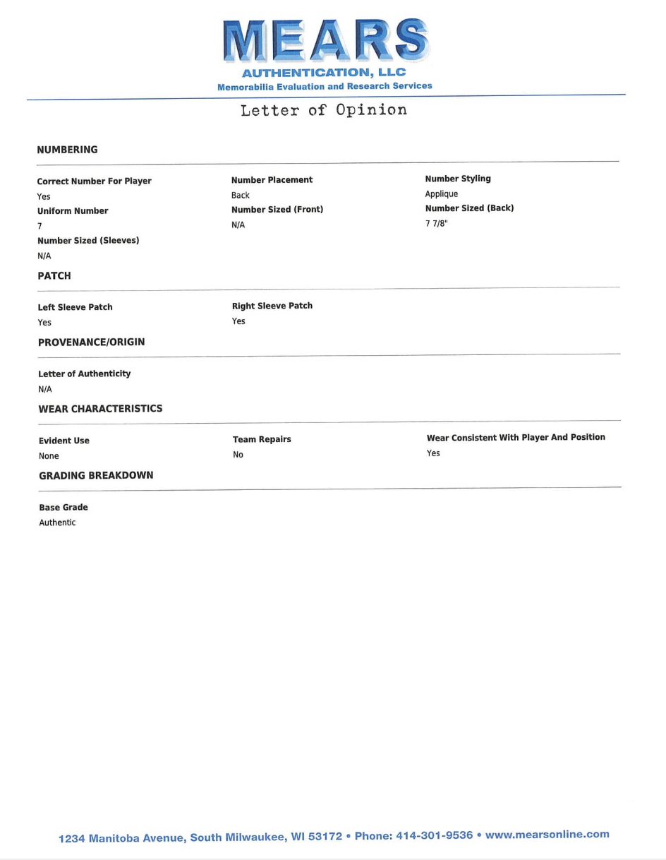 This jersey is being listed as match issued and is accompanied by a MEARS LOA, supporting the attribution and authenticity of the piece. It is not being offered as photo matched to a specific match.