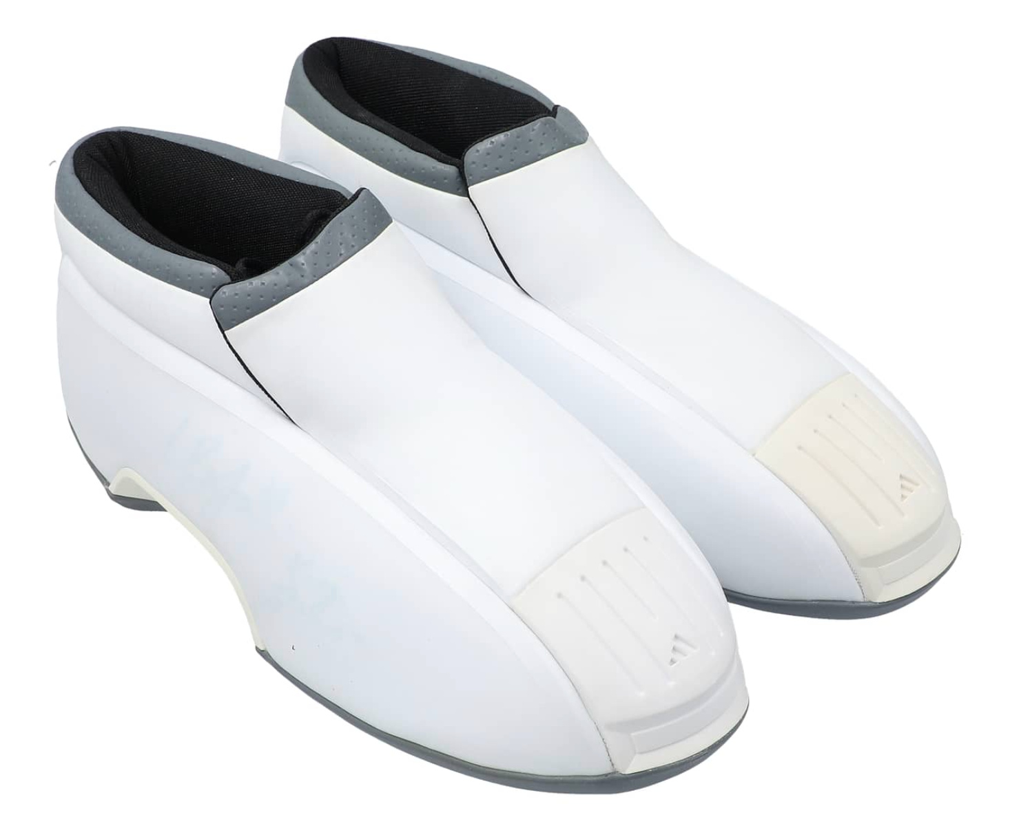 Offered is a signed pair of Adidas The Kobe Two basketball sneakers from LeBron James’ high school era, dated 2001 02. The pair presents in the clean white and black look associated with this model, and it is being listed as issued/worn, consistent with how these are categorized with the accompanying documentation.