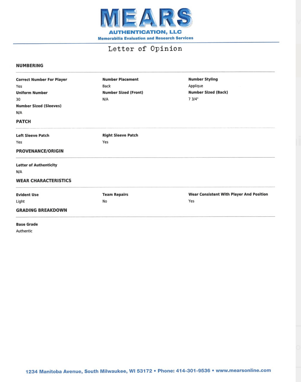 This uniform is being listed as game used or game issued and is accompanied by a MEARS Letter of Opinion with a Final Grade of Authentic, attributing the match uniform to Lionel Messi. It is not being offered as photo matched to a specific match.