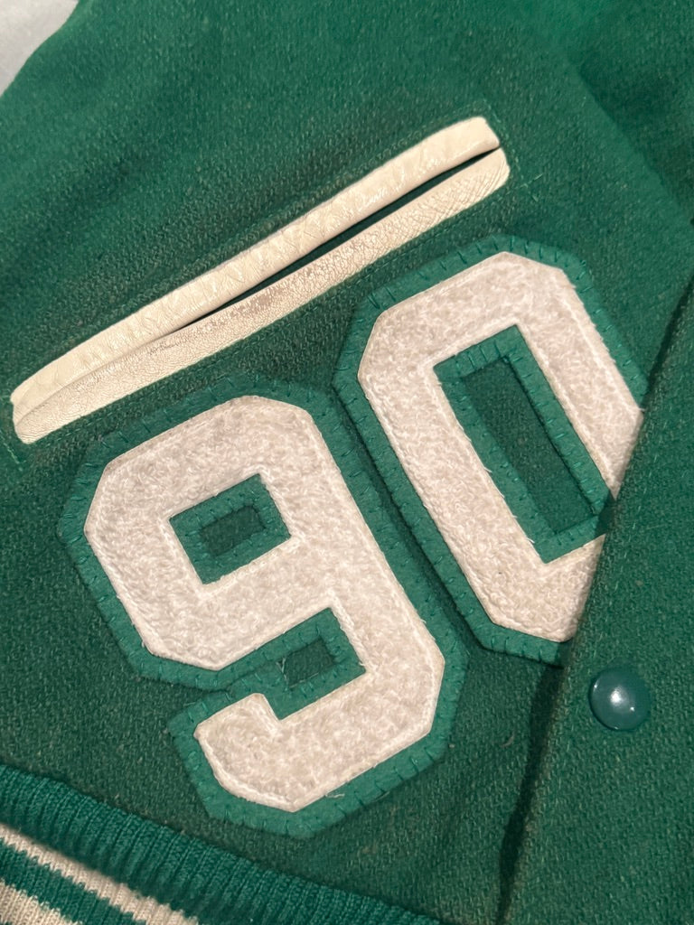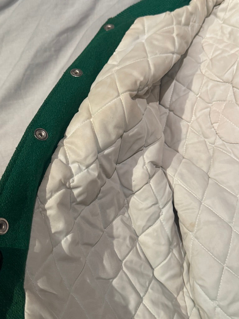 Own a piece of basketball history with this authentic Michael Jordan signed vintage varsity jacket. Featuring the GOAT's bold, dark signature and accompanied by a letter of authentication, this large-sized piece captures the essence of Jordan's legendary career. The classic varsity styling and premium condition make it an exceptional addition to any serious collector's portfolio. A rare opportunity to possess memorabilia from the greatest player of all time.